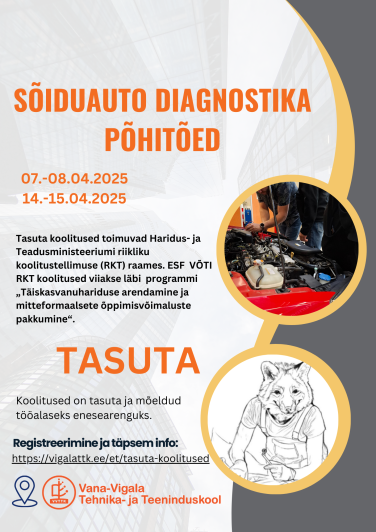 Koolituse edukal läbimisel väljastatakse õpilasele Vana-Vigala Tehnika- ja Teeninduskooli täiendkoolituse tunnistus.