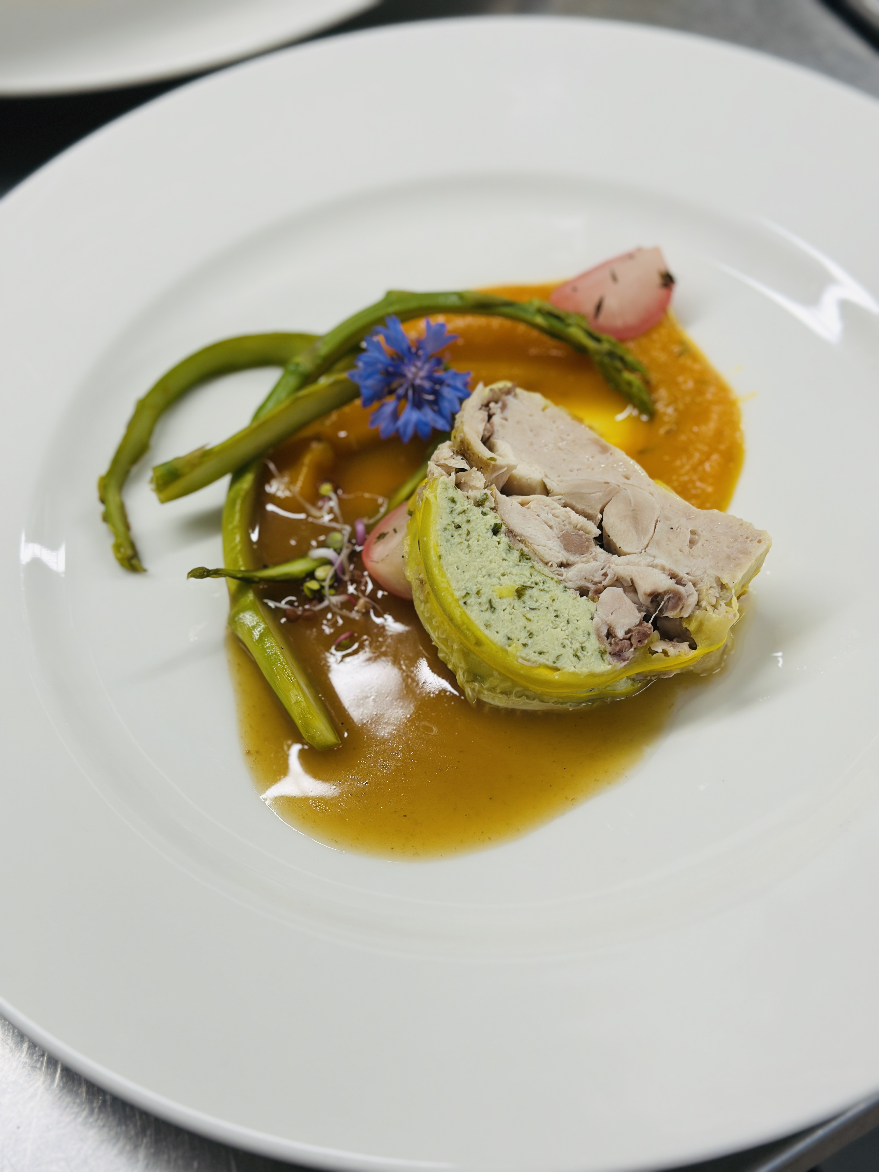 Pearoa nimeks sai “ettevaatust- jänesed liikvel. Appi... juba köögiviljapõllul”. Munadepühad on tulemas ja munadepühade üks sümbol on jänes. Pakkusime jänese - kana terriini kollase tsukiini ümbrisega. Lisaks oli veel bataadipüree, spargel, küpsetatud redis ja mõnus kaste seda kokku sidumas. Nagu ikka pakkusime kõrvale enda küpsetatud seemneleiba. Kuna metsast sai juba karulauku, siis tegime ka karulauguvõi.