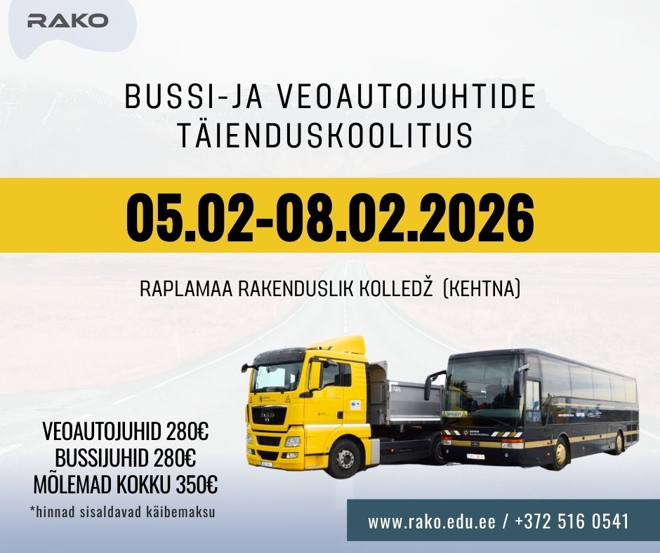 𝐁𝐮𝐬𝐬𝐢-𝐣𝐚 𝐯𝐞𝐨𝐚𝐮𝐭𝐨𝐣𝐮𝐡𝐢𝐝 - aeg taas tulla Kehtnasse täienduskoolitusele (5. veebruar - 8. veebruar 2026).