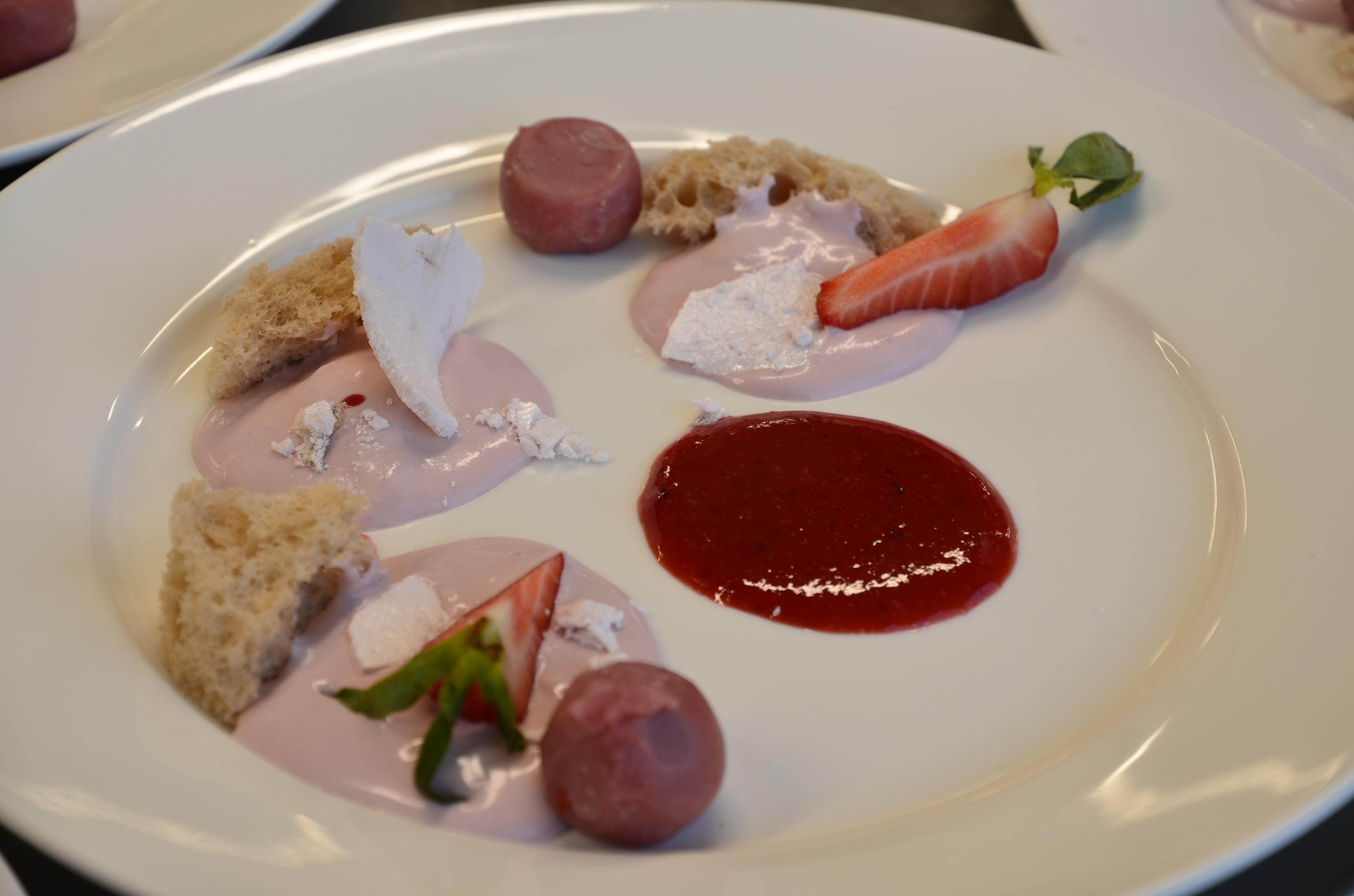 Maasikakreem, mündi sifoonkook, maasikapallid, besee, maasikakaste