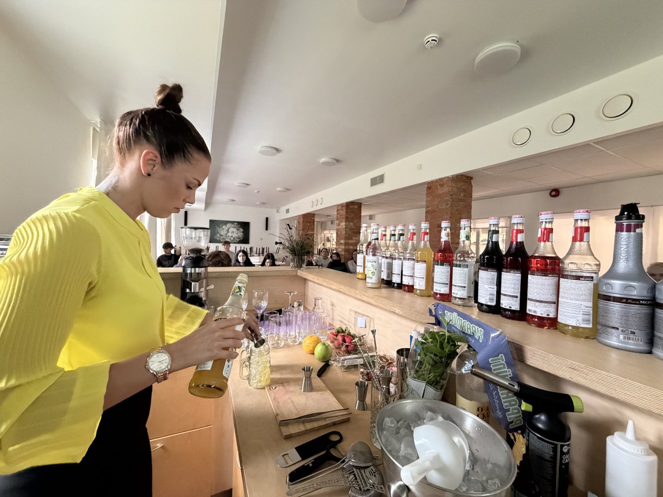 Õpilased said oma silmaga näha ja muidugi ka maitsta, kuidas valmivad mõnusad alkoholivabad limonaadid ja kokteilid. Aitäh MONINlink opens on new page koolitajale Kaisa Noormägile .