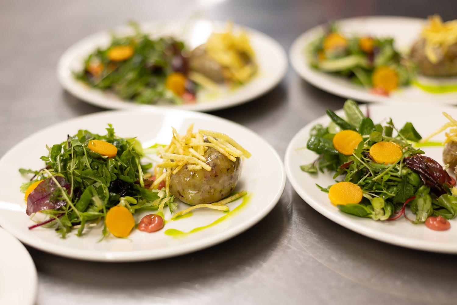 Esimese eelroa nimi oli "Pidu pole Vigalas pidu kui kartulivorsti ei anta." Vigala kandi kõige kuulsam toit on kindlasti kartulivorst. Pakkusime seda mini variandina koos kergelt marineeritud kõrvitsarataste, salatimixi, ürdiõli, enda valmistatud majoneesi ja kartuliõlgedega.