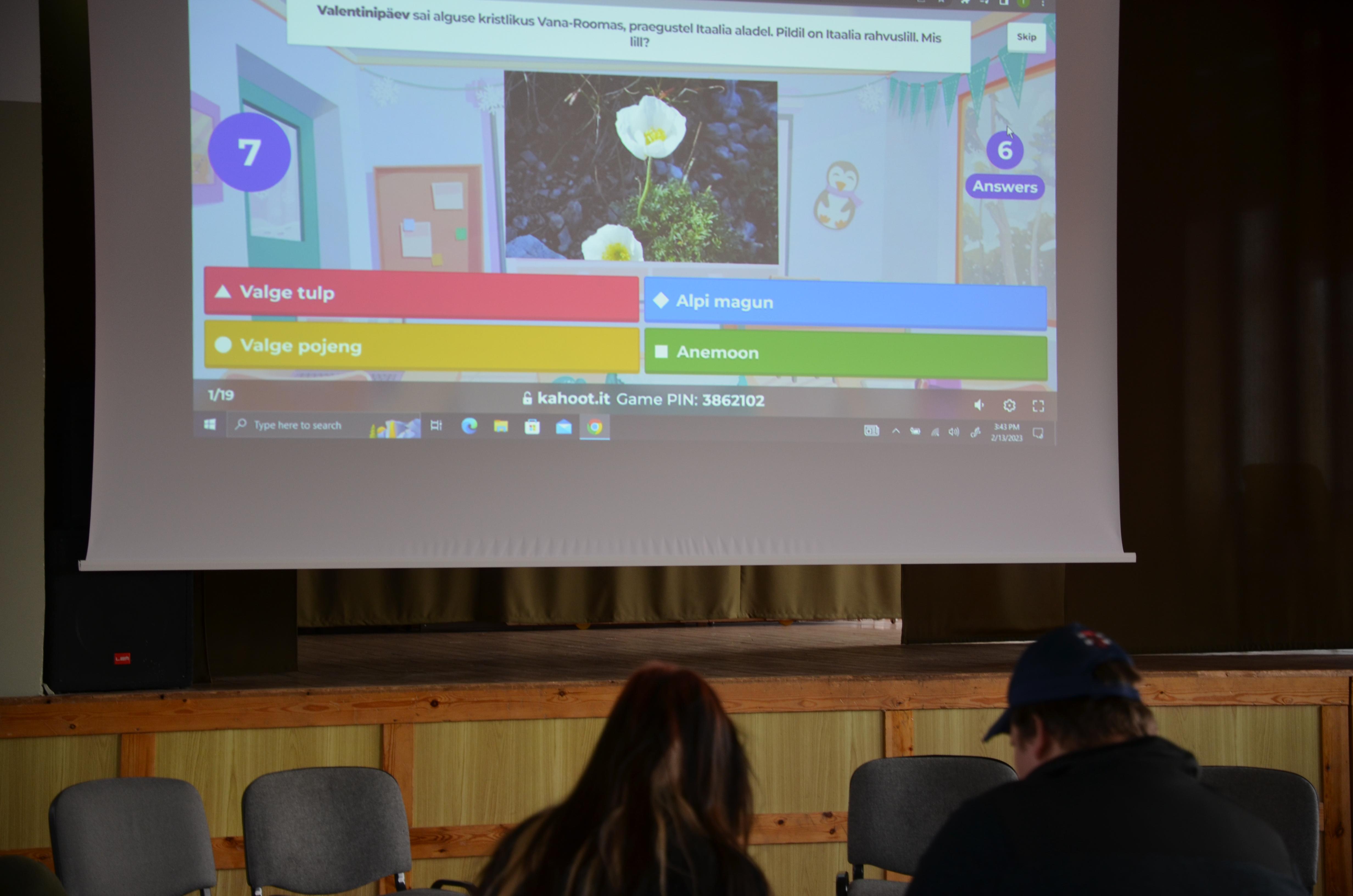 13. veebruaril toimus kutsekeskhariduse gruppide vahel sõbralik Kahoot'i võistlus, mille viis läbi õpetaja Tiina Kalda. Küsimused olid väga huvitavad - näiteks tuli õpilastel valida valentinipäeva traditsiooni algusega seotud riigi Itaalia (Vana-Rooma oli teadagi armunute püha alguspaik) rahvuslill. Kahoot'i võitis 22KS1, teisele kohale jäi 22EV1 ning kolmandale 22AM1 - esimene kursus tegi seekord vanematele kursustele silmad ette.