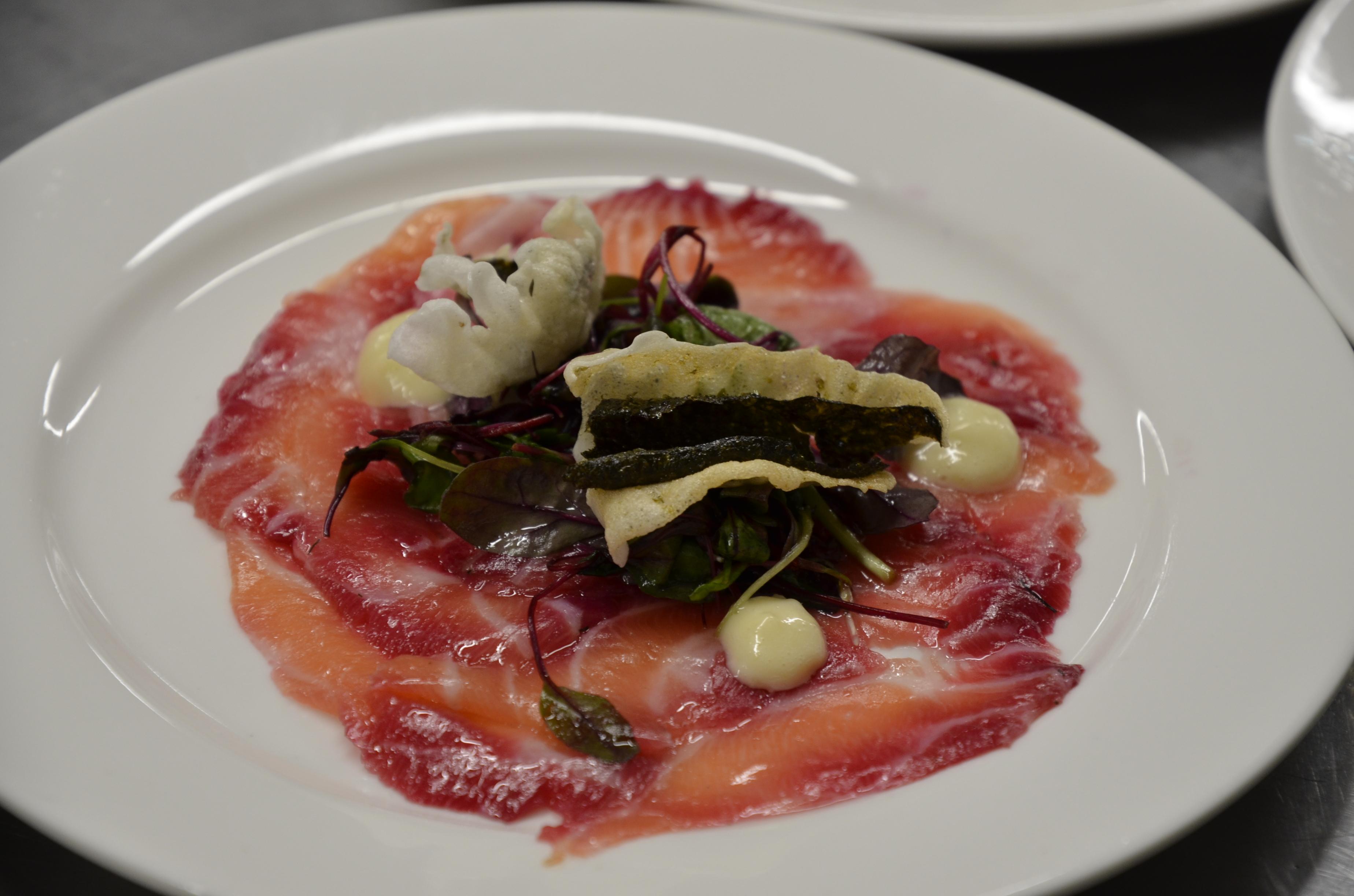 PEEDIMARINAADIS LÕHE CARPACCIO SALATIMIXI, KÜÜSLAUGUMAJONEESI JA NORIKRÕPSUGA