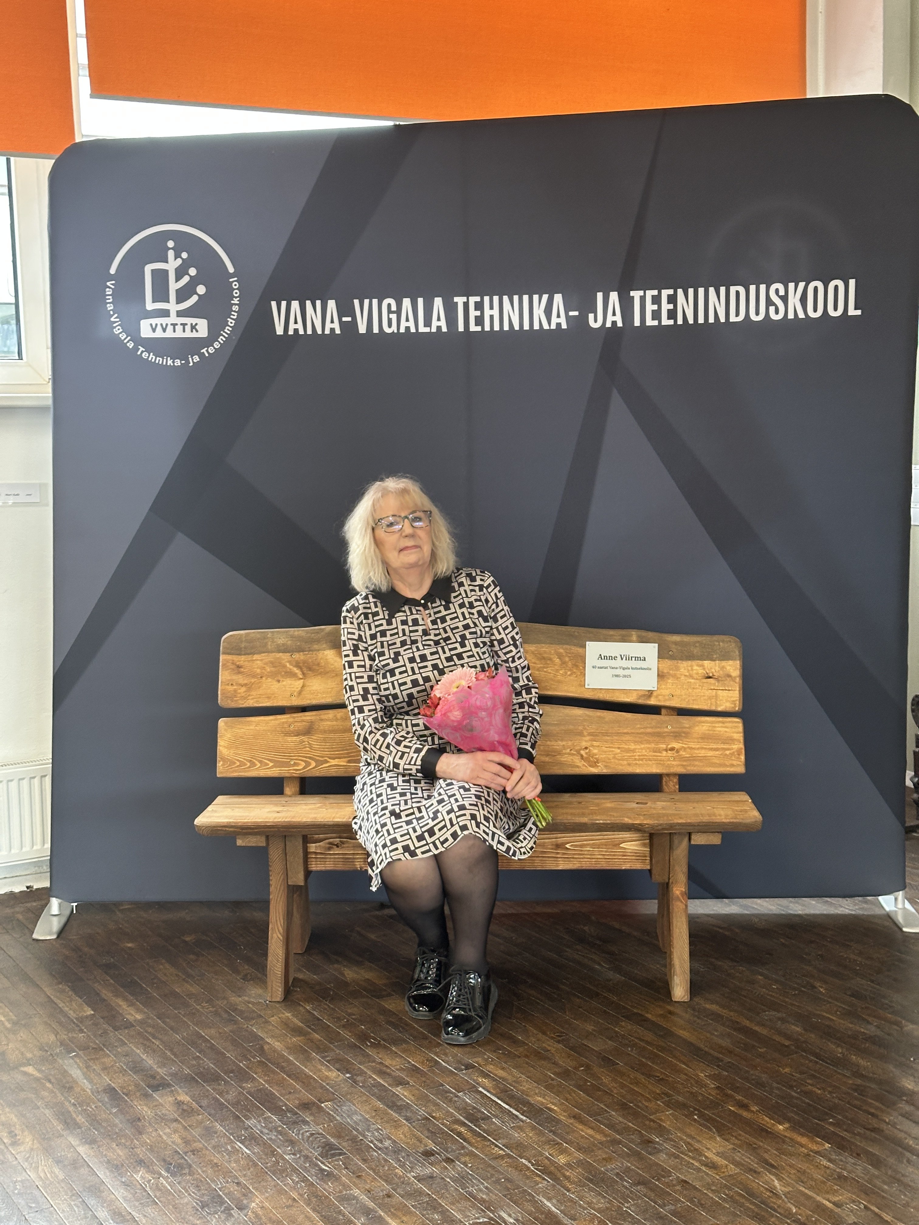 Staažimärkide jagamisel tõsteti esile ka õpetaja Anne Viirmaa, kes on koolis töötanud 40 aastat – talle kingiti tähistuseks kaunis pink.