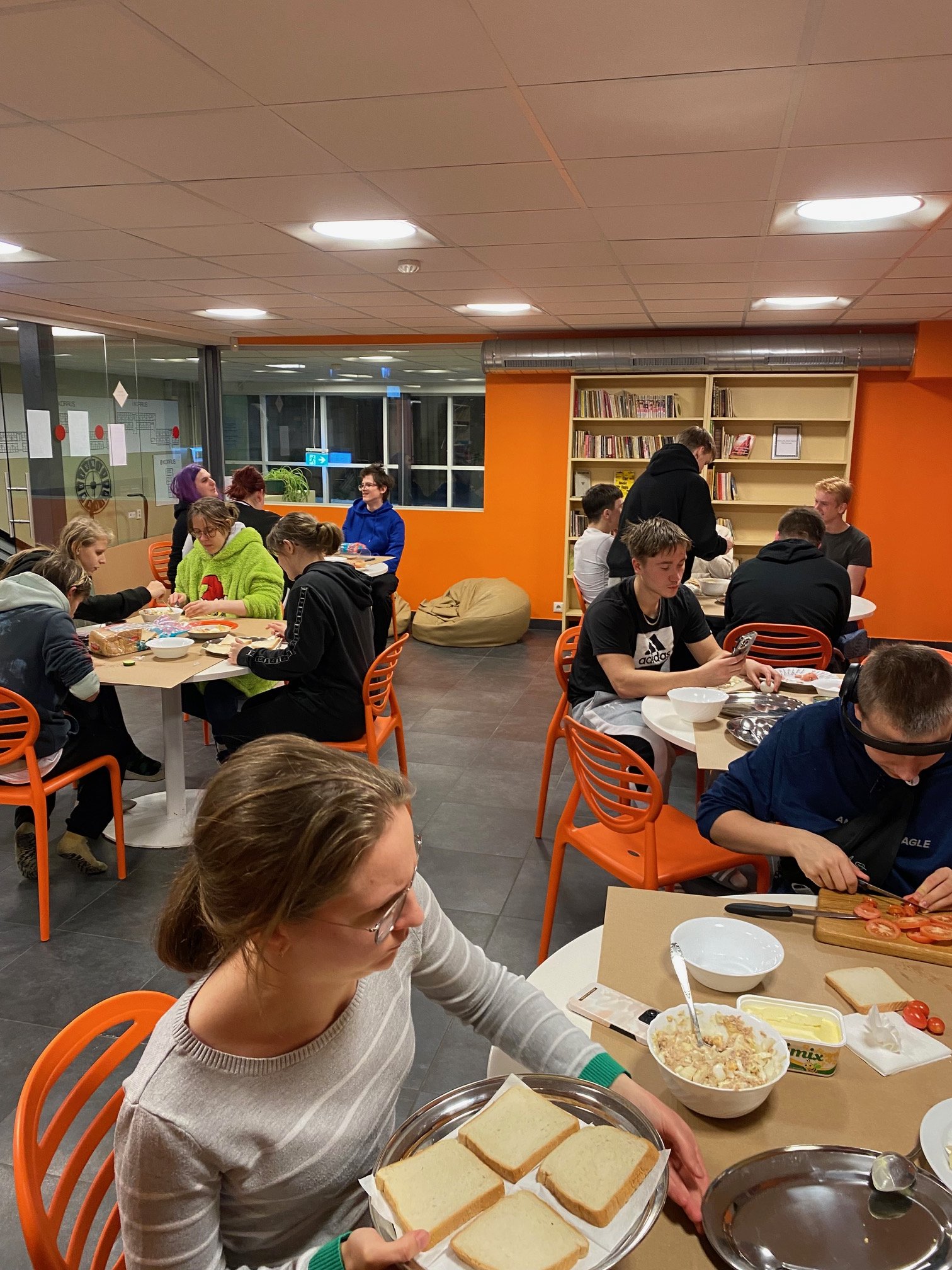 Õhtu eesmärk oli tutvustada õpilastele lihtsat ja soodsat leivakatet – tuunikala, muna, sibul ja majonees. Üllataval kombel maitses see kõigile. Lisaks valmistati ja kaunistati meisterlikult ka vorsti- ja juustuvõileibu.