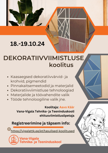 Koolitaja: Aavo Käär, Vana-Vigala Tehnika- ja Teeninduskooli ehitusviimistlusõpetaja.