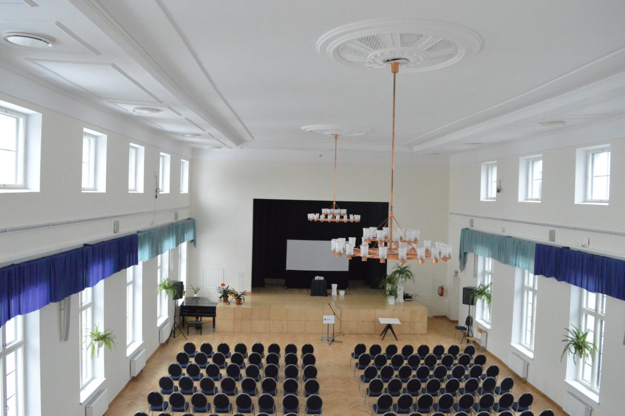 | Kooli peamajas asuv aula kuulub kindlasti maakonna kaunimate saalide hulka. Aulas on istekohti kuni 280 inimesele ning see on igati sobilik koht konverentside, foorumite, vastuvõttude, koolituste, kontsertide, etenduste, laulu- ja tantsulaagrite, pulmade läbiviimiseks. |