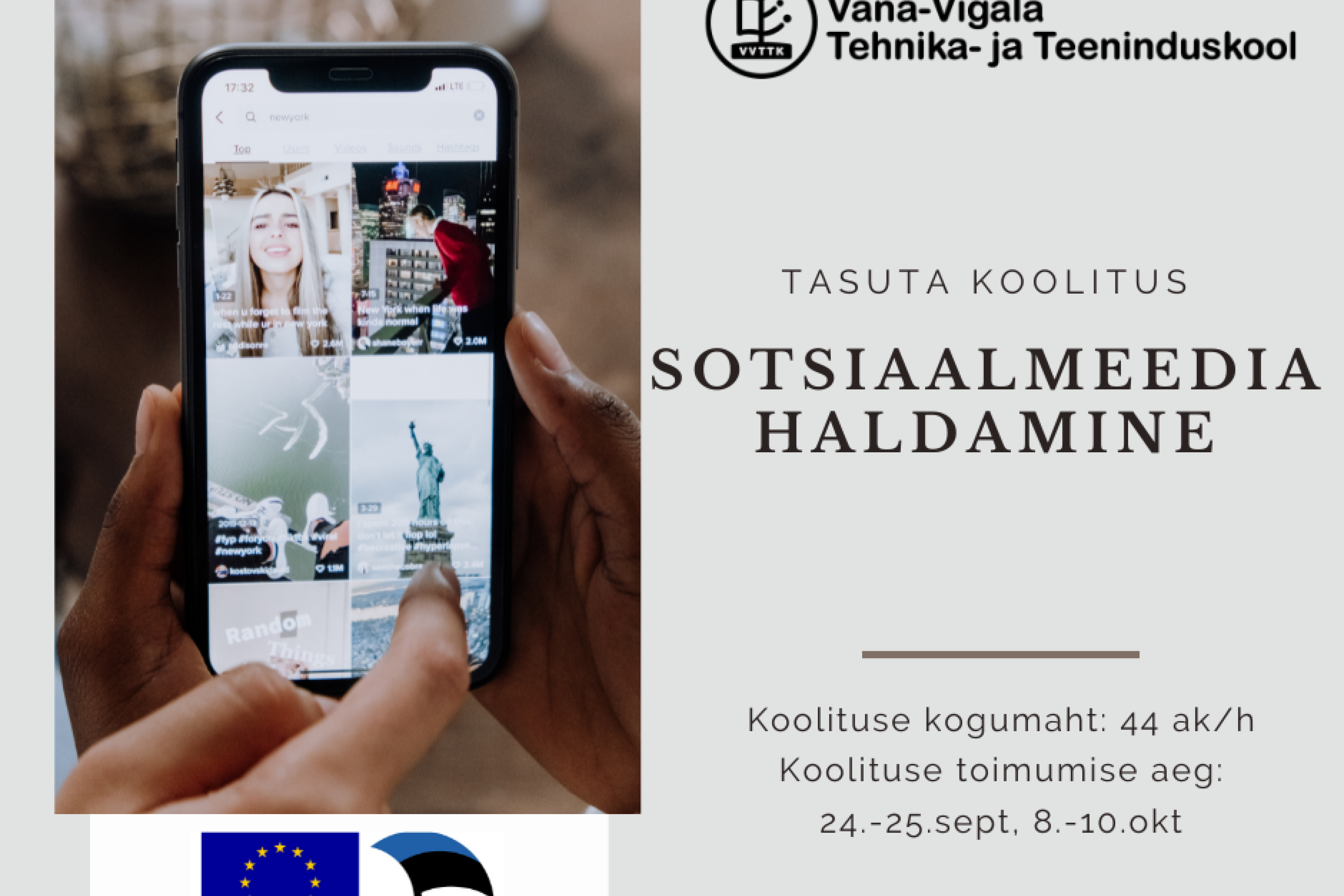Koolitus viiakse läbi ESF programmi „Täiskasvanuhariduse edendamine ja õppimisvõimaluste avardamine“ raames.
