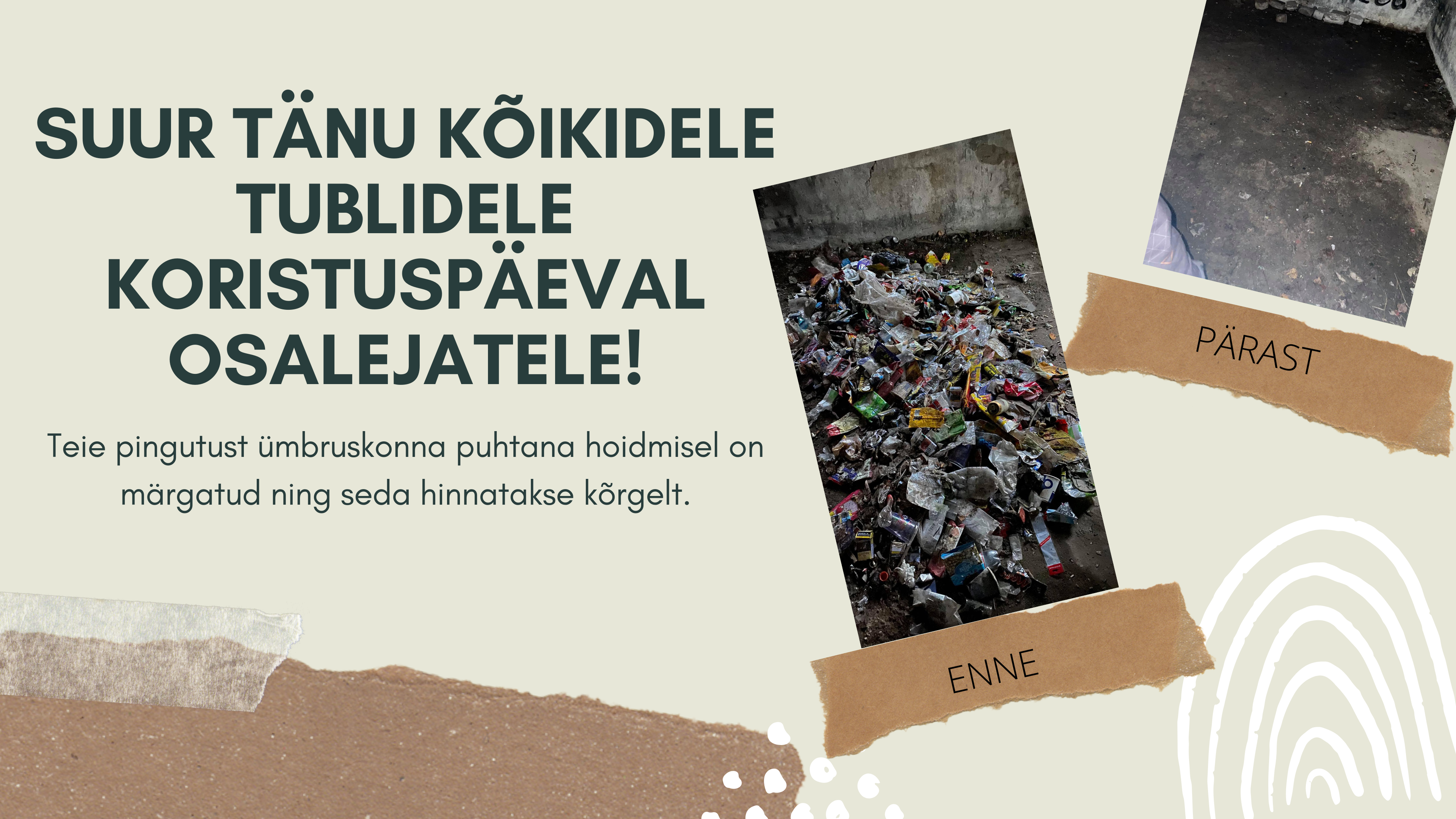 Koristuspäev oli kõigile osalejatele vabatahtlik ja seda toredam on tõdeda, et leidus arvestatav hulk tublisid noori, kellele puhas keskkond väga korda läheb.