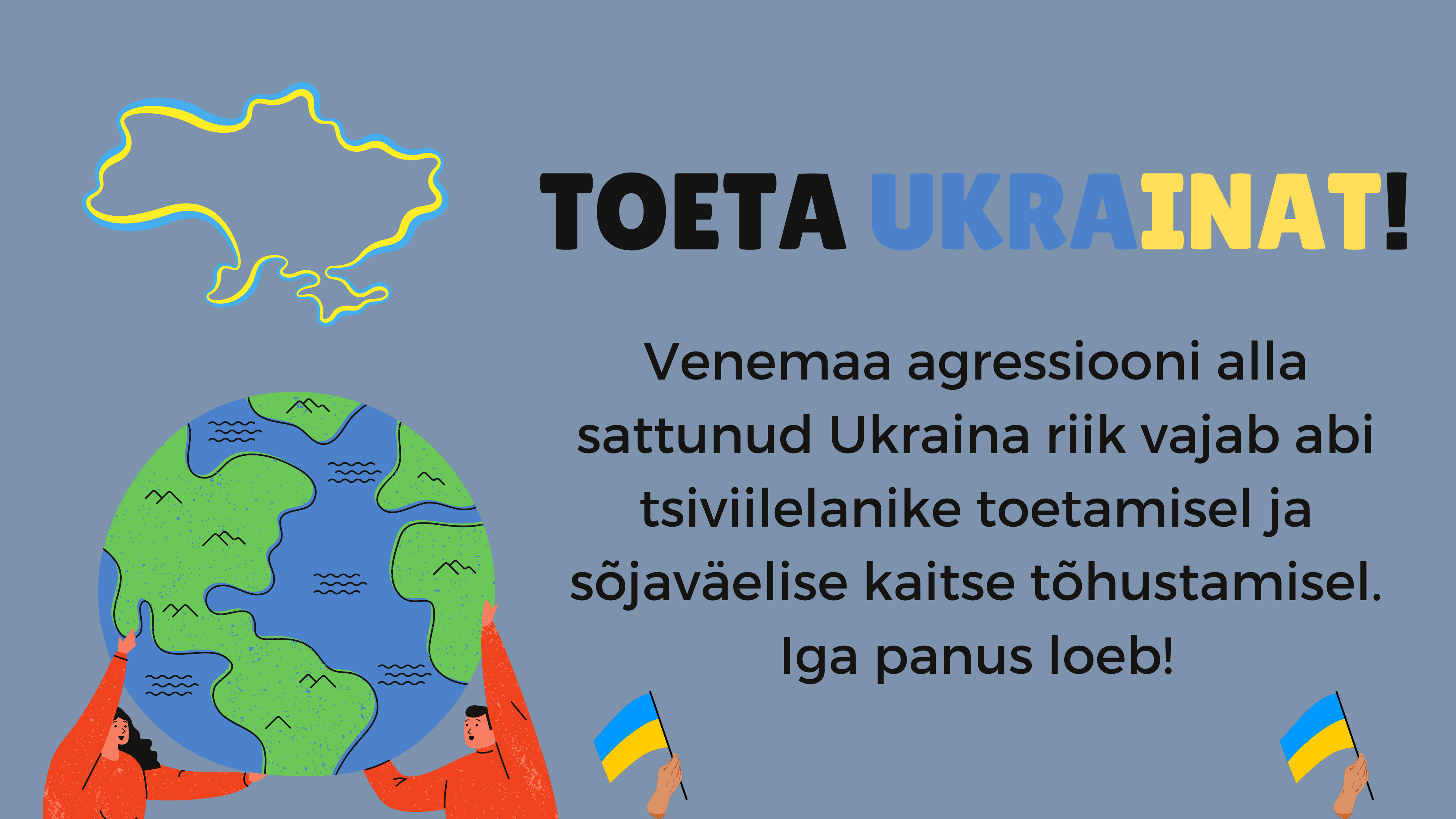 Seoses hetkel Ukrainas toimuva kriisiga on 01.-04.03.2022 võimalik tuua Vana-Vigala Tehnika- ja Teeninduskooli direktori kabinetti annetusi aitamaks Ukraina abivajajaid.