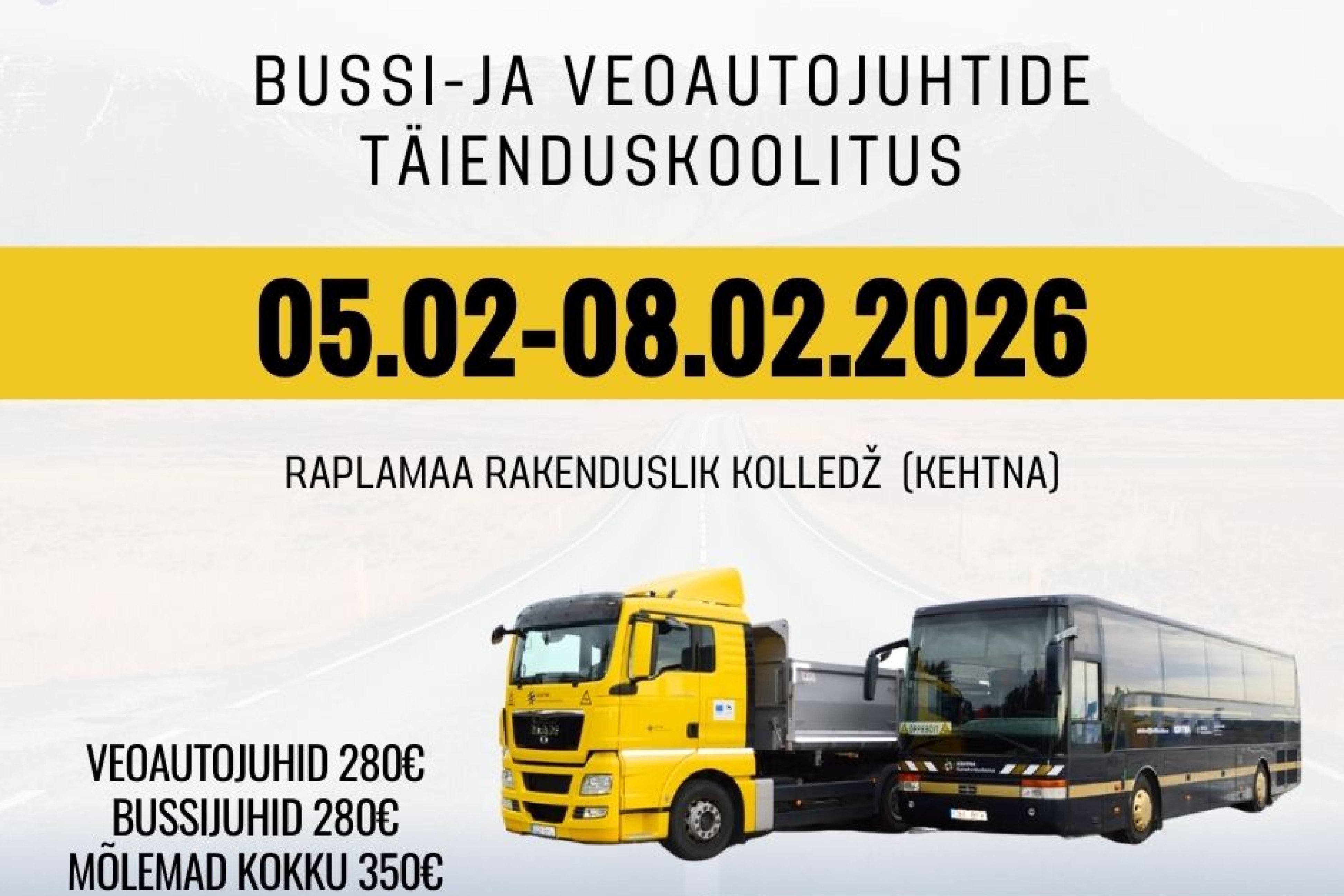 𝐁𝐮𝐬𝐬𝐢-𝐣𝐚 𝐯𝐞𝐨𝐚𝐮𝐭𝐨𝐣𝐮𝐡𝐢𝐝 - aeg taas tulla Kehtnasse täienduskoolitusele (5. veebruar - 8. veebruar 2026).