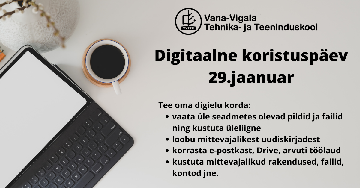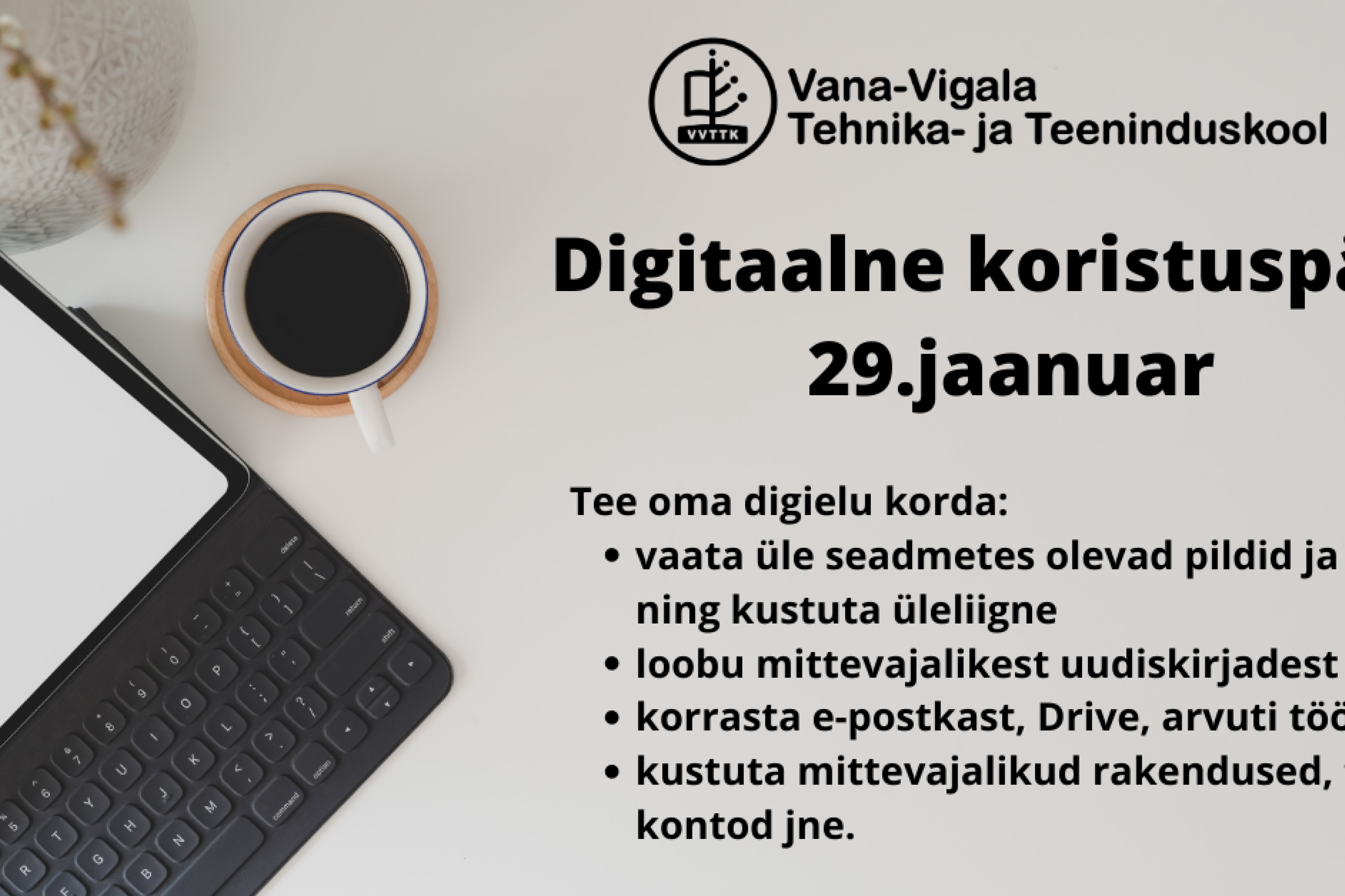 Reedel, 29.jaanuaril on digitaalne koristuspäev, kuhu on ka meie kool end registreerinud. Digitaalse koristuspäeva eesmärk on vähendada iga inimese digitaalset koormat meie planeedile.