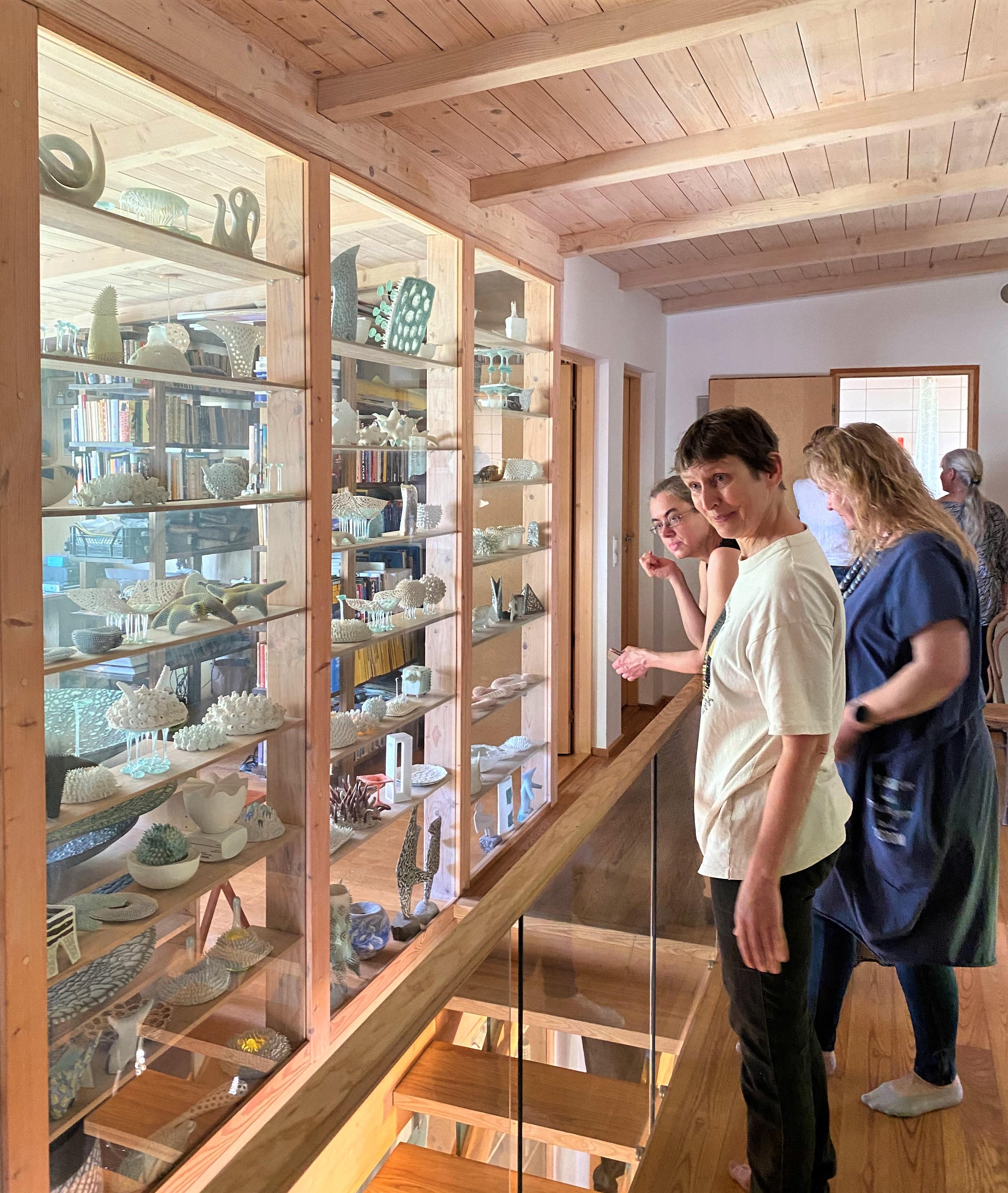 Kunstnik Anne Türn näitas ainulaadset keraamika ja klaasi koos kasutamise tehnoloogiat ning vastas arvukatele küsimustele. Koolituspäeval osalejatel oli eksklusiivne võimalus näha kunstniku suurepäraselt eksponeeritud loomingut täis kodu. Anne jagas ümarlauas lahkelt oma teadmisi keraamika vallas ja keraamika põletamise nippe. Näitas pabersavi ja paberportselani kasutamise võimalusi valgustite valmistamisel.