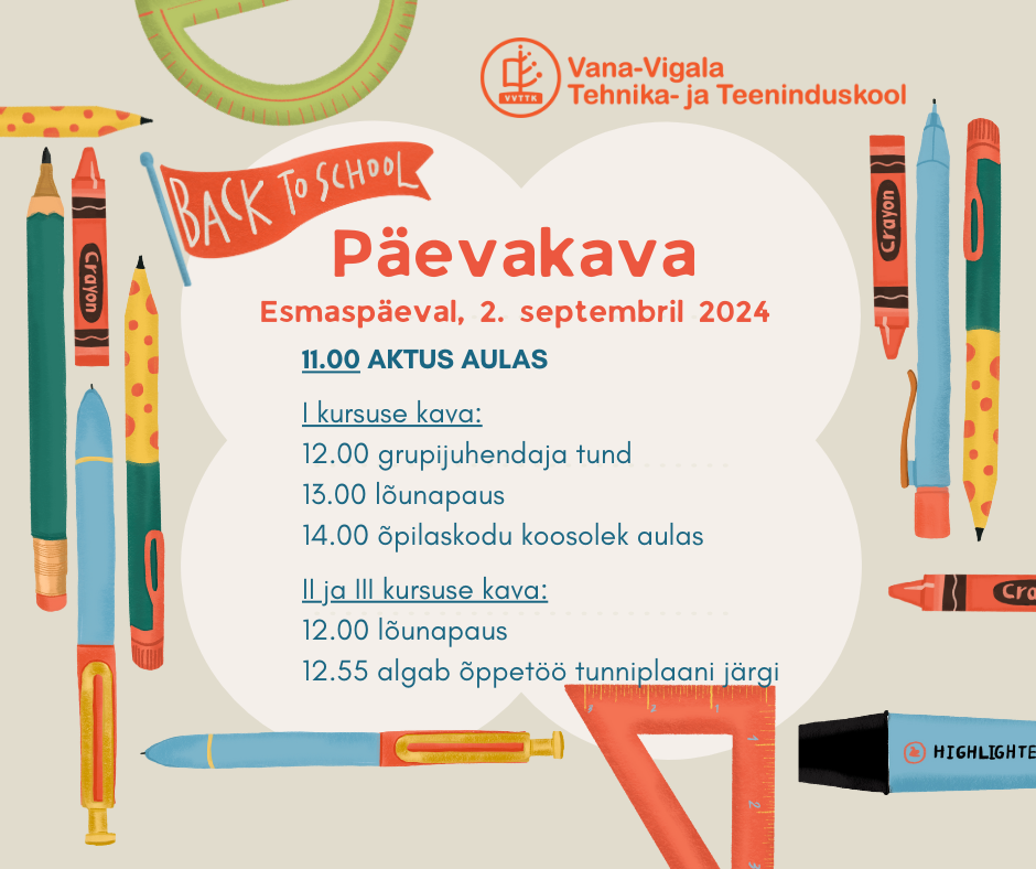 Kooliaasta algab 2. septembril kell 11.00 piduliku aktusega kooli aulas ning osalevad kõik kutsekeskhariduse ja II taseme õpilased. Kuna aktus ei lange kokku tsükliõppe sessioonidega, siis on tsükliõppijatele osalemine vabatahtlik.