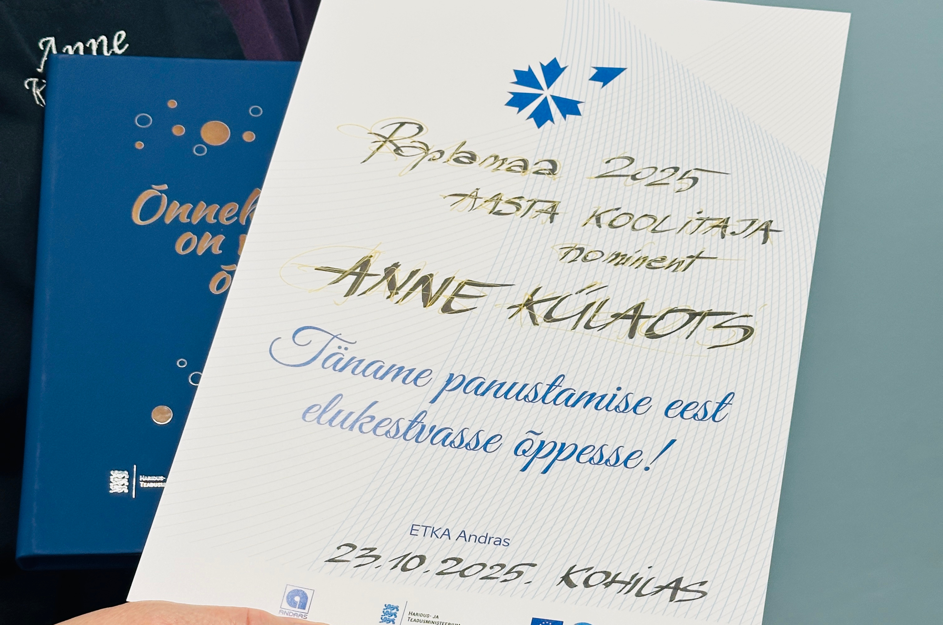 Meil on suur rõõm teatada, et meie kooli õpetaja Anne Külaots oli Raplamaa 2025. aasta Aasta koolitaja nominent.