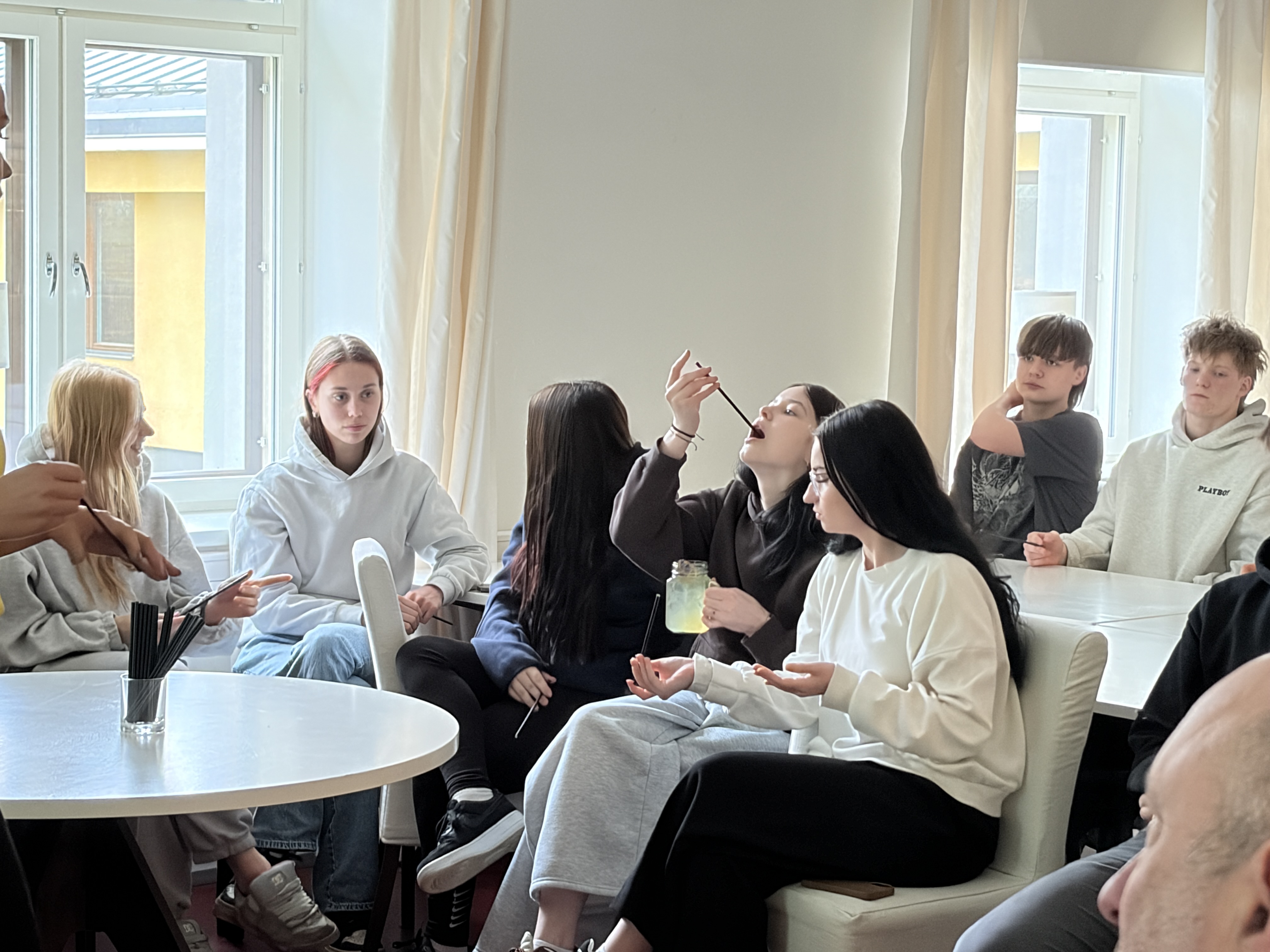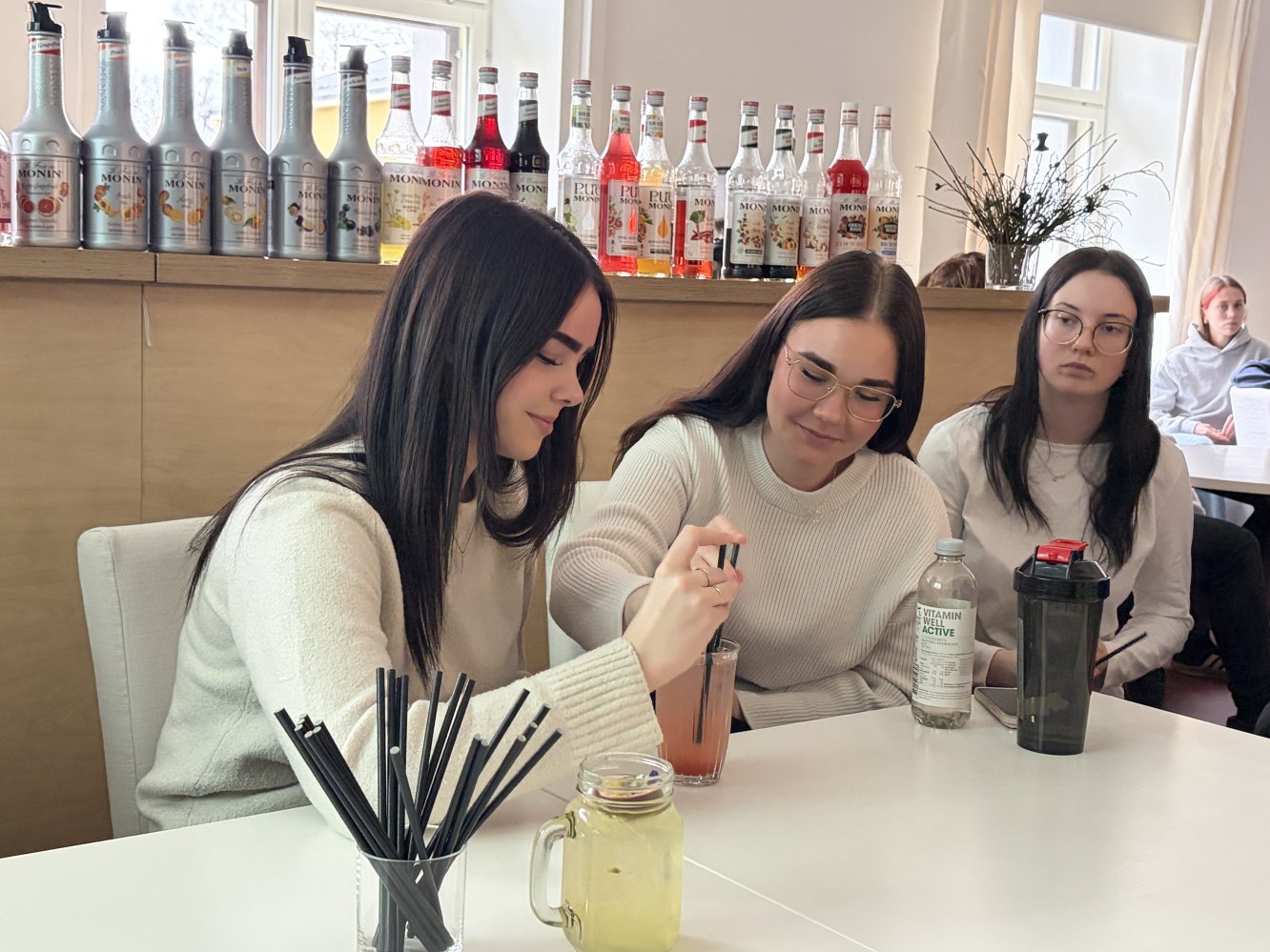 Õpilased said oma silmaga näha ja muidugi ka maitsta, kuidas valmivad mõnusad alkoholivabad limonaadid ja kokteilid. Aitäh MONINlink opens on new page koolitajale Kaisa Noormägile .