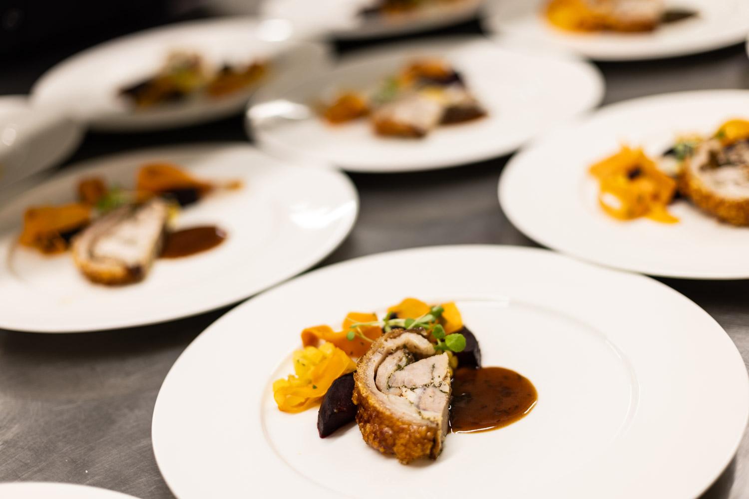 Järgmiseks käiguks oli pearoog nimega "Siga jäi köögiviljapeenra vahele magama." Pidupäeva puhul on Vigalas ikka pakutud sealiha ja nii tegime seda ka meie. Pakkusime krõbeda kamaraga ürdist sealiharulaadi. Sinna kõrvale serveerisime maapirni, mis on kasvanud Vigala aias ja taldrikule jõudis püreena. Lisaks veel kergelt suitsutatud punane peet, glasuuritud porgandid ja tänaseks natuke unustatud naeris. Seda kõike sidus kokku veinikaste. Pearoa kõrvale pakkusime veel enda küpsetatud seemneleiba ja odrakaraskit.