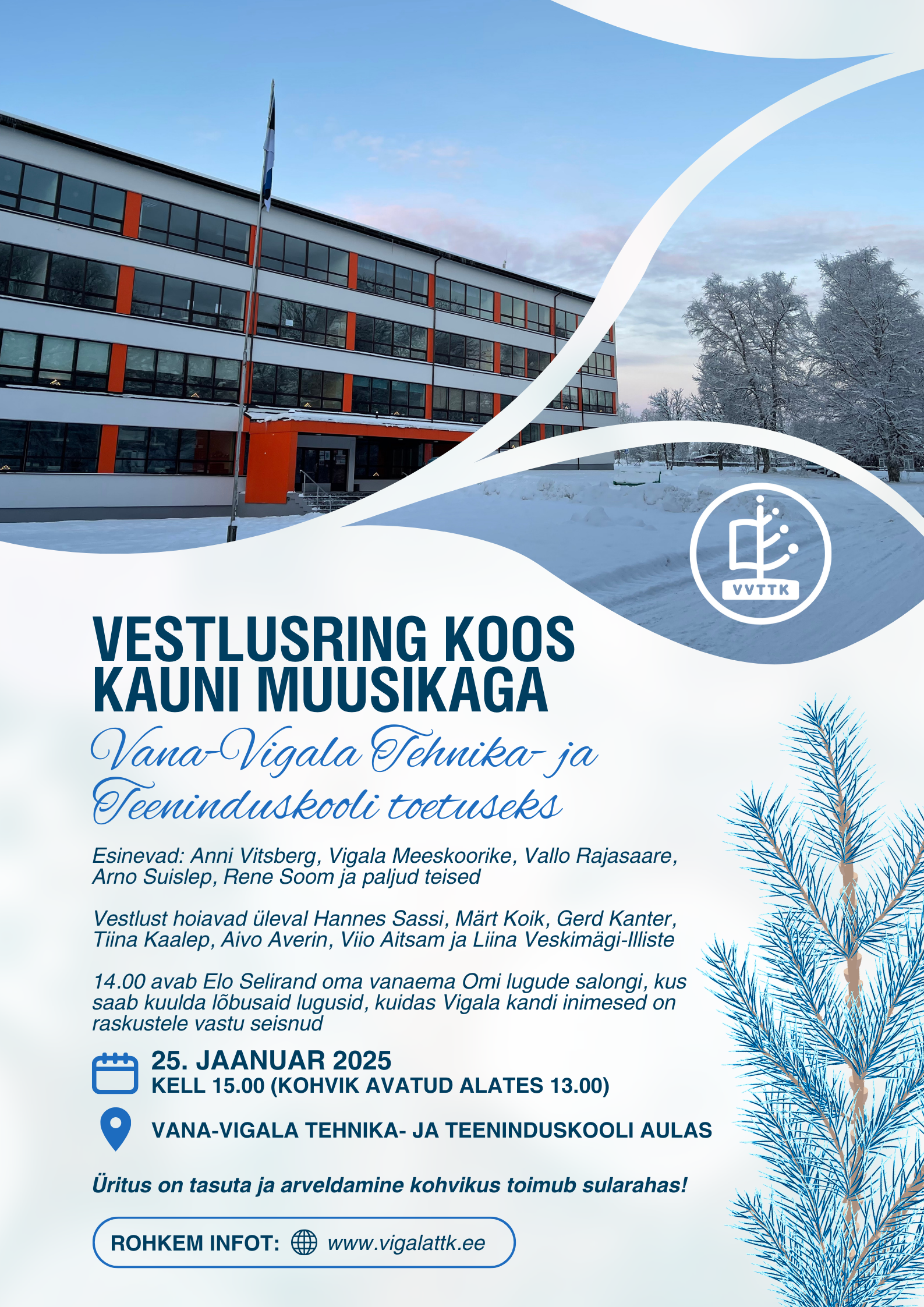 25. jaanuaril toimub Vana-Vigala Tehnika- ja Teeninduskooli aulas pärastlõunane vestlusring koos kauni muusikaga.