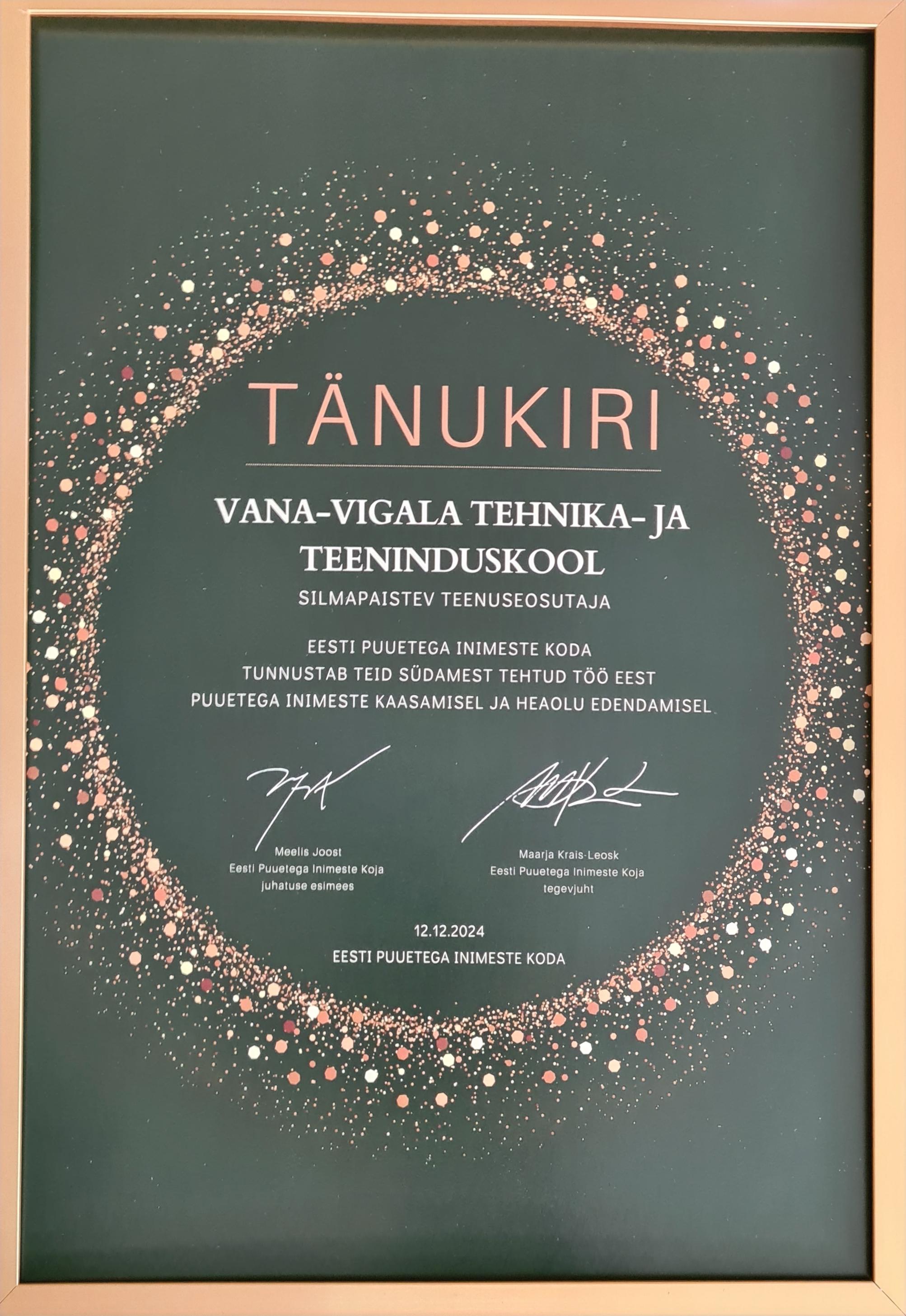 Seekord tunnustati Vana-vigala TTK-d silmapaistva teenuseosutaja tiitliga.