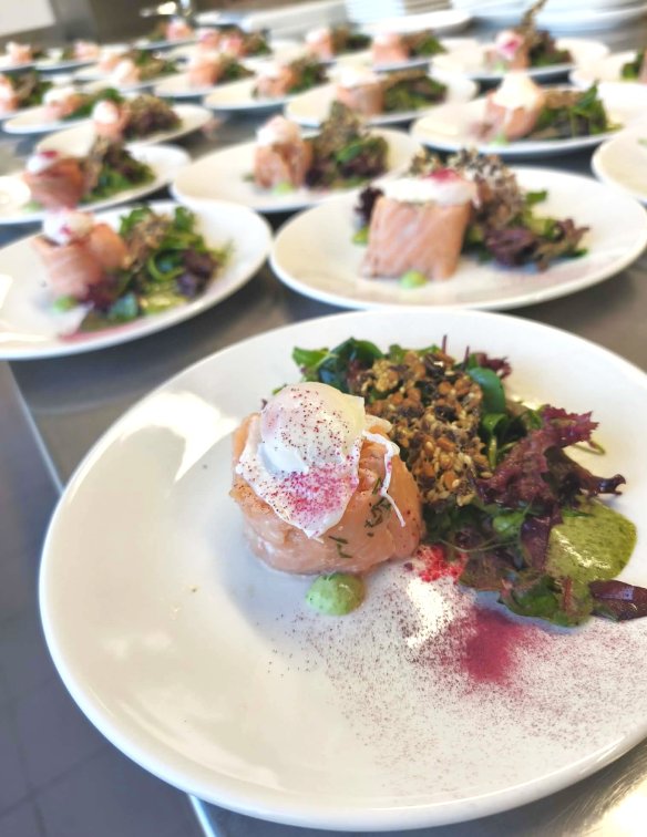 Tervitusampsuks pakkusime nostalgilist kurepesa, mis sai endale täidiseks karulaugu-feta kreemi, parmesani ja muidugi naati. Selle käigu nimeks sai „Mine metsa“. Meie käisime.. ja saimegi saagiks karulauku ja naati. Kui on kevad, siis on aeg minna ka kalale. Nii sai selle käigu nimeks „Kala juba näkkab“. Serveerisime madalal temperatuuril küpsetatud lõhe ballotiini ning pidades meeles munadepühi ka pošeeritud vutimuna. Kaaslaseks neile oli serveeritud rohelist salatit, natuke spinati-sidruni majoneesi ja seemnekrõps. Järgmiseks käiguks valmistasime Aasia mõjutustega roa. Serveerisime porgandi-kookose püreesupi koos riisinuudlite pesa ja kergelt tšilliste krevettidega. Selle käigu nimeks sai „Reisile tahaks“. Vahepalaks kostitasid külalisi lauludega teenindajad Jan, Kaur, Risto.