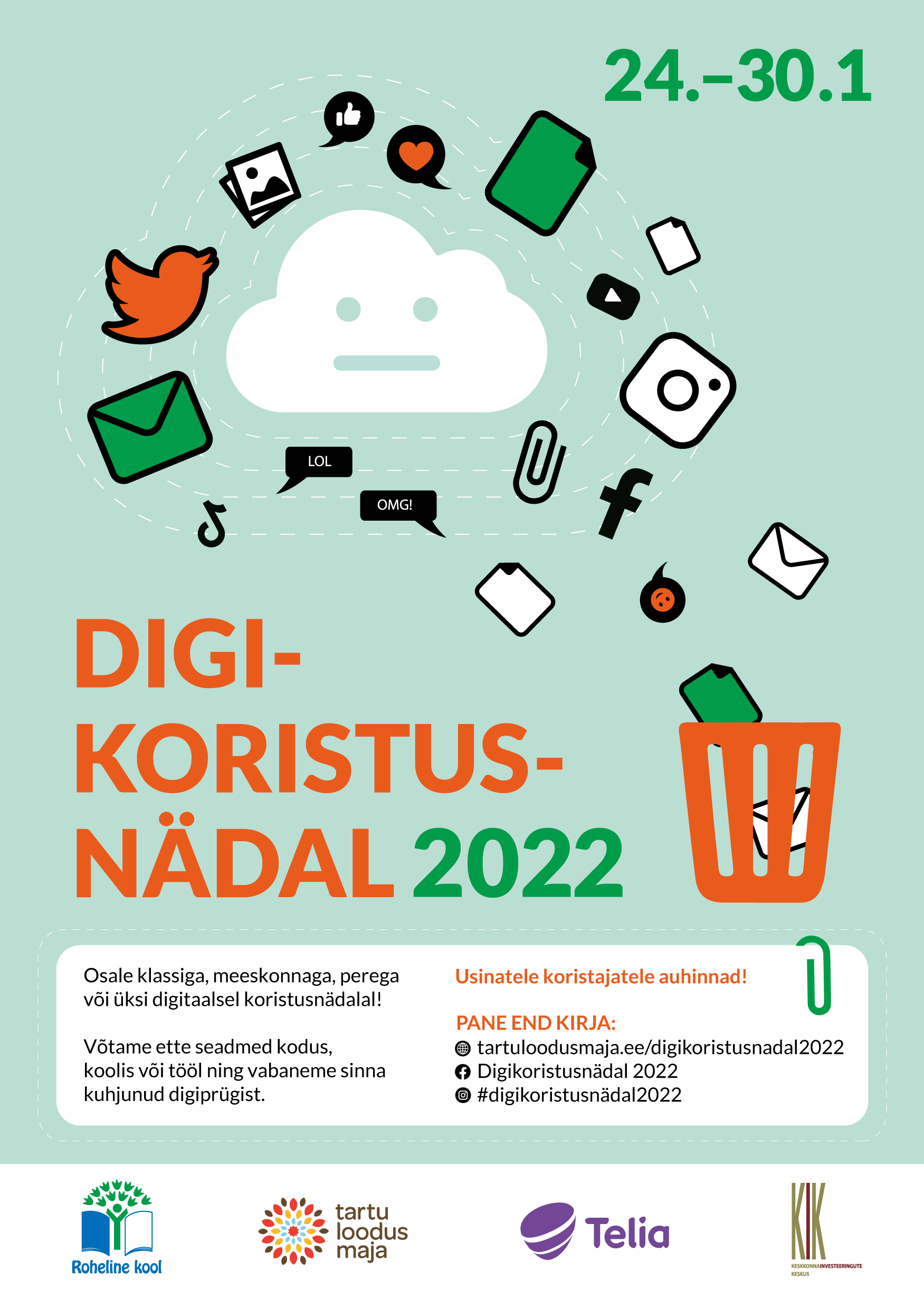 Digikoristusnädalat 2022 korraldab Eesti Rohelise kooli programmlink opens on new page koostöös Tartu loodusmajaga. Kampaania partneriks on Telia Eesti AS, toetas TalTech.